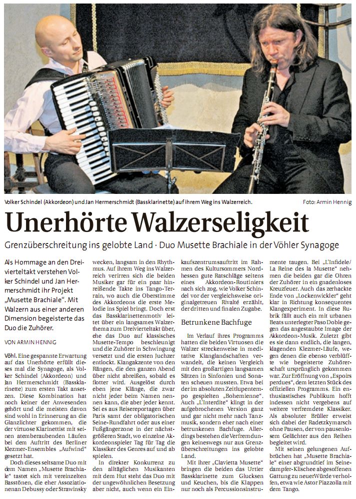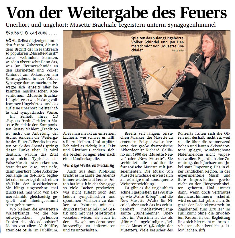 Grenzüberschreitung ins gelobte Land - Duo Musette Brachiale in der Vöhler Synagoge